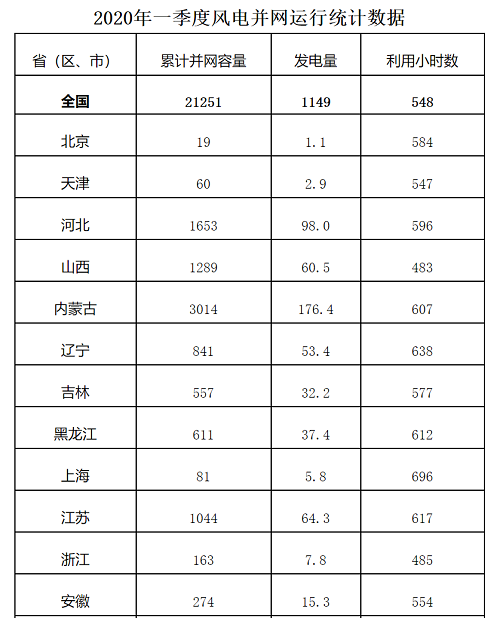 5月11日,國家能源局發(fā)布《2020年一季度風(fēng)電并網(wǎng)運(yùn)行情況》。